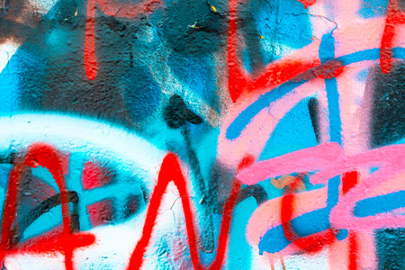 Street art. Colorful graffiti on the wall. Fragment for background. Abstract detail of a graffiti