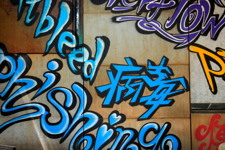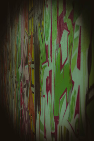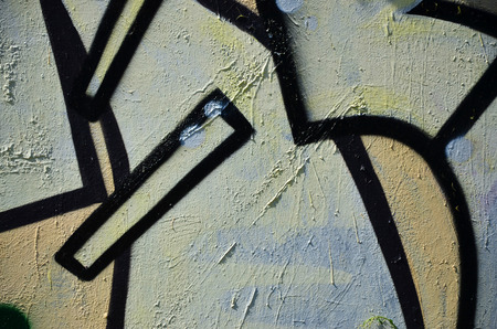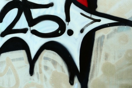 Texture of a fragment of the wall with graffiti painting, which is depicted on it. An image of a piece of graffiti drawing as a photo on street art and graffiti culture topics
