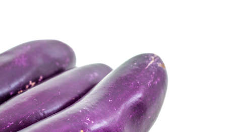 Close up of Eggplants on white background with copy space. Healthy vegan vegetarian food concept.