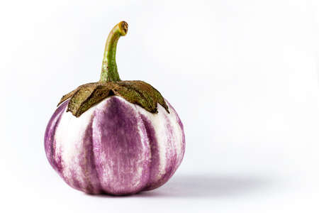eggplant isolated on white background, white purple, round, copy space