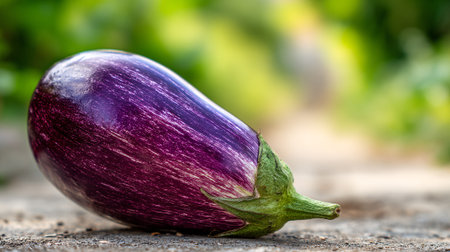 Striking Zebra Eggplant Showcasing its Unique Texture and Color Against Natural Backdrop