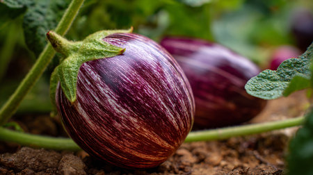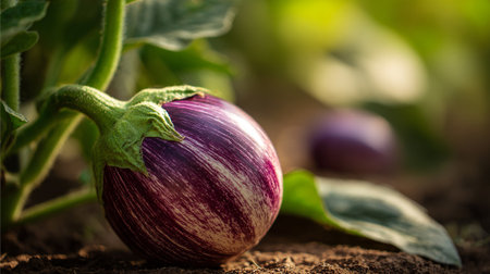Charming Striped Eggplant Still Life in a Natural Garden Setting