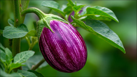 Beautiful vibrant eggplant nestled among greenery in a natural setting