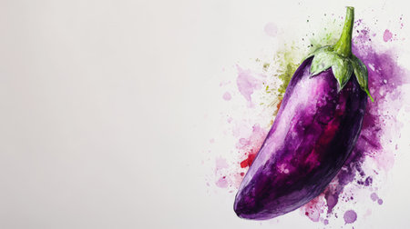 Vibrant eggplant with splash on matching monochromatic backdrop