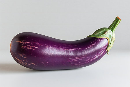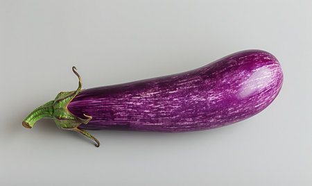 A whole, ripe eggplant with a glossy surface against a muted backdrop. Generate AI