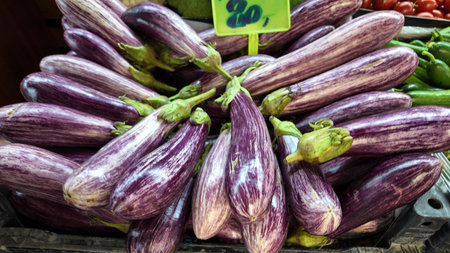 Striped eggplant: A fresh organic vegetable for culinary creations and healthy eating.