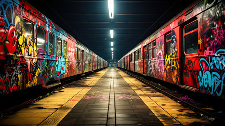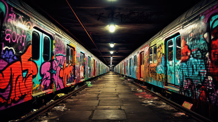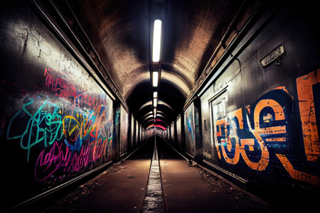 subway tunnel, with graffiti art and tags on the walls, created with generative ai
