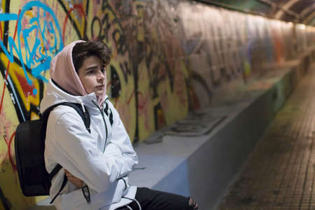 young teenager or preteen in the underground of the city