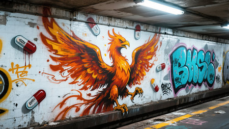 streetmural graffiti walls illustration spraypaint vibrant, detailed texture, realism artistic streetmural graffiti walls