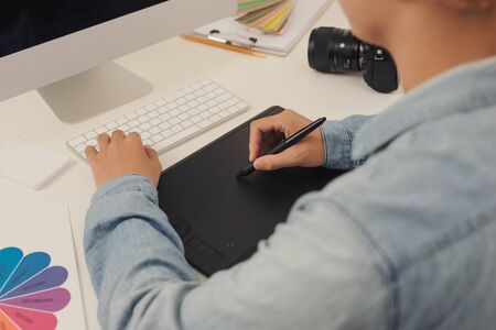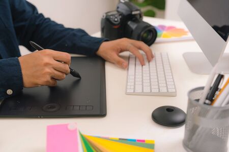 photographer man hand graphic tablet on desk