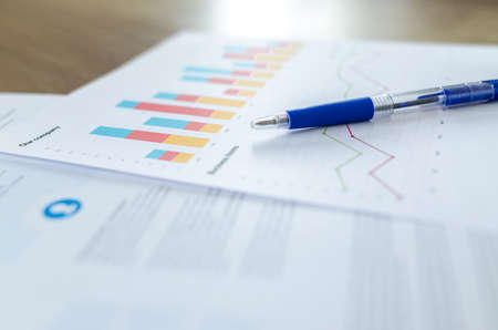 ballpoint pen indicates income graphs lying on the table