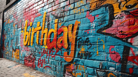 Graffiti Birthday: A graffiti-style mural with bold and bright colors spelling out birthday and wishes messages. simple cartoon happy birthday background with the inscription happy birthday on it