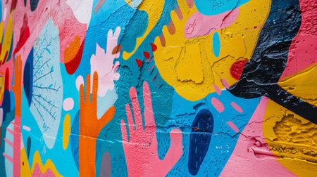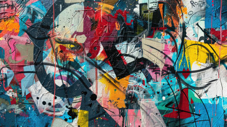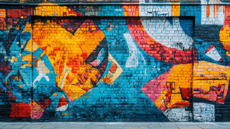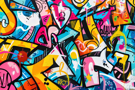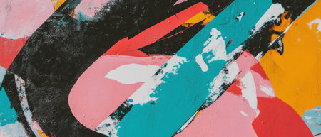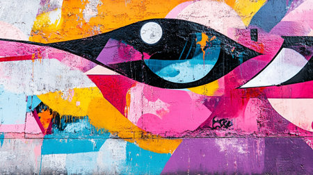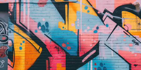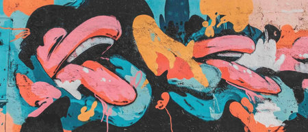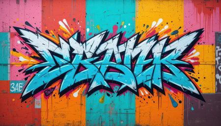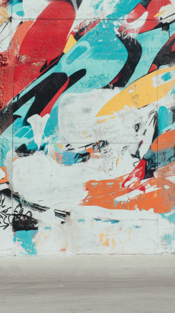 Discover vibrant abstract graffiti art on a colorful wall mural. This modern street art showcases creativity and bold expression through vivid colors and dynamic patterns.