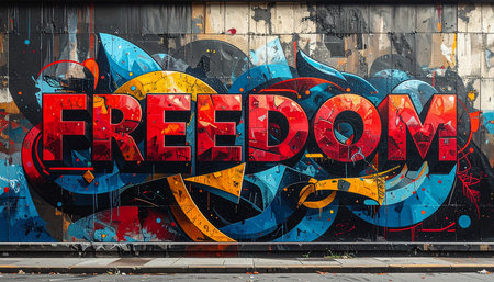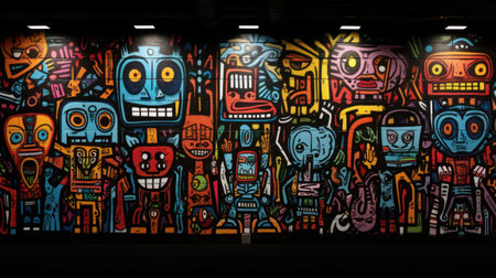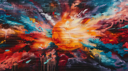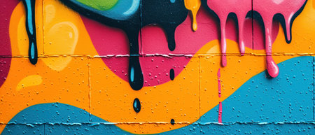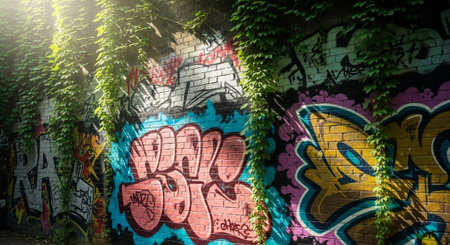 A detailed depiction of a vibrant graffiti wall showcasing an array of colors and textures, perfect for creative projects needing urban flair.