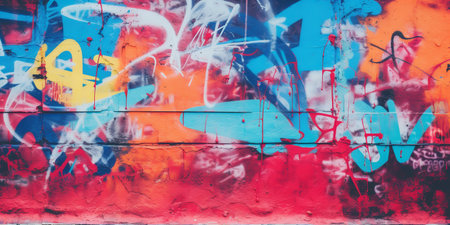 An abstract background is formed by colorful graffiti sprayed onto a wall. Expressive, Ai Generated.