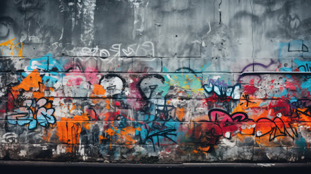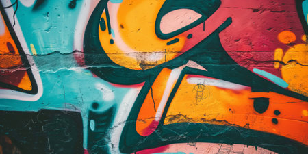 Vibrant graffiti on aged wall, urban street art backdrop, bold colorful design.