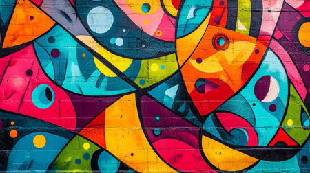 A dynamic and colorful graffiti pop art background on a wall, combining bold abstract shapes and vibrant street art elements. Perfect for urban-themed projects, fashion designs, or creative campaigns seeking an edgy, modern look. This design captures the essence of street culture and contemporary art, ideal for adding a trendy and youthful vibe to any visual content