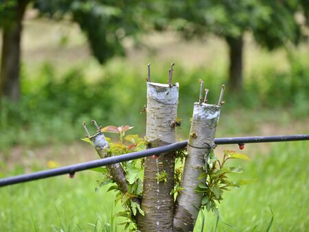 grafting trees in spring. Gardening and vegetable garden. Selective focus. nature.