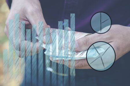 man hand graph in screen on the dark background