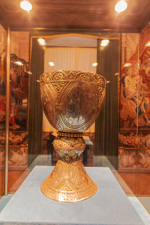 Editorial: KREMSMUNSTER, UPPER AUSTRIA, AUSTRIA, August 18, 2020 - View of the Tassilo Chalice, a treasure of the Kremsmunster Abbey