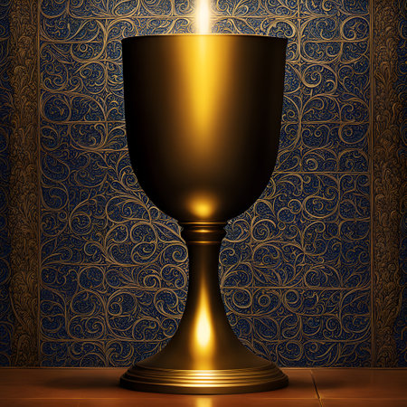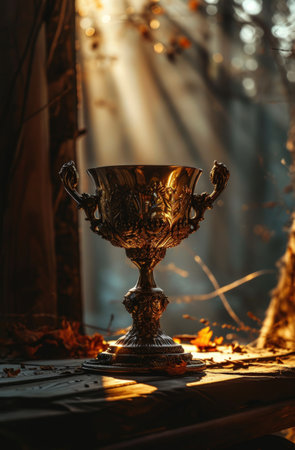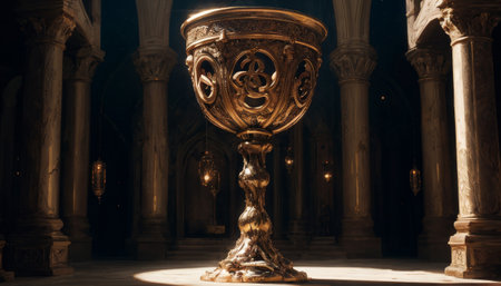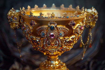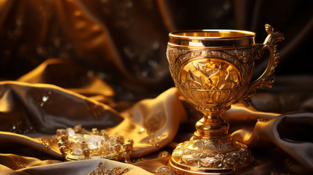 A majestic, gold-encrusted goblet stands out in a luxurious setting, evoking a sense of royalty and opulence