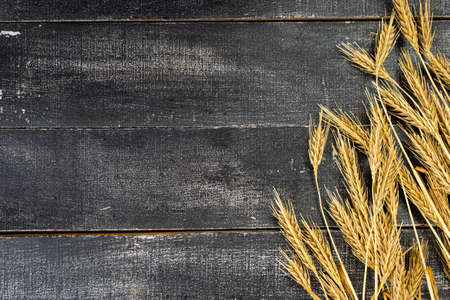 agriculture wheat spread on dark background, copy space