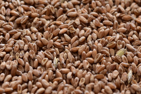Heap of wheat seeds close-up.