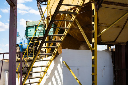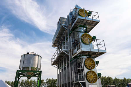 grain cleaning and separation. A device for cleaning zen after harvesting. elevator against the sky
