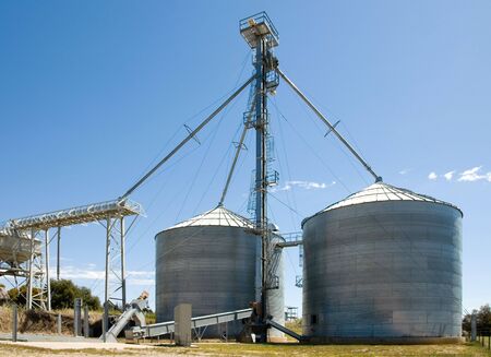 Industrial silos for storing grain harvest. Agriculture and farming.
