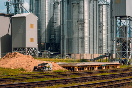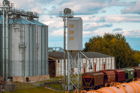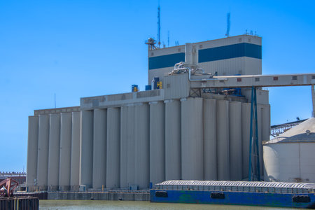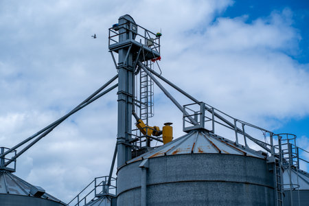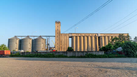 View of modern granaries for storing cereal grains outdoors