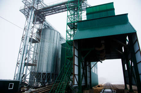 Photo Modern farm complex for storing grain, cereals, corn and oilseed rape, agriculture, cone, close-up, building, agri-business
