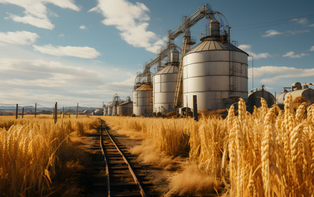 Rustic silos amidst golden wheat fields storage of abundant agricultural harvest