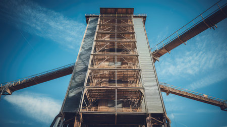 close-up of grain elevator conveyor system, created with generative ai