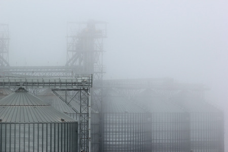 Grain terminal tanks in dense fog, Odessa, Ukraine