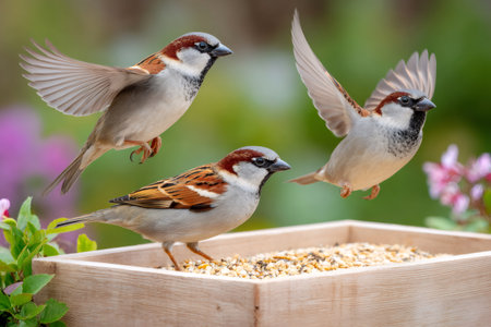 sparrow eat seeds in winter