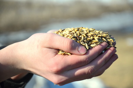 a handful of grain in the hands of