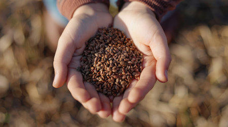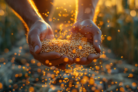 Healthy hand holding ripe seed in golden sunlight on farm generated by artificial intelligence