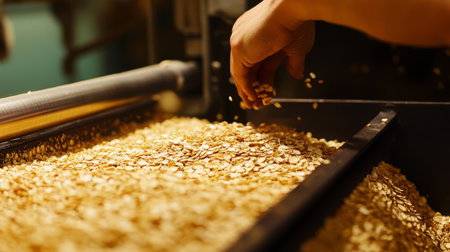 Brewer showing grains at brewery factory