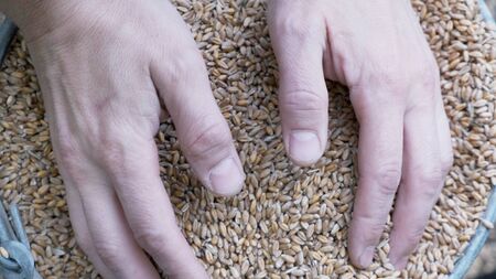 Farmer holds wheat grain in his hands