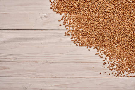 background, wheat grains scattered on a tree table