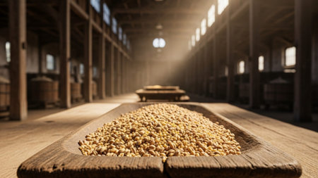 Vast Storage Area in Chocolate Factory Featuring Rows of Cocoa Beans. Concept of Chocolate Production, Industrial Storage, Manufacturing Process.