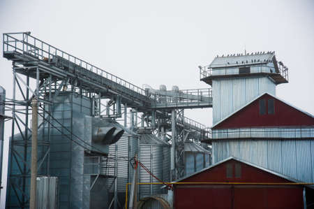 Photo Modern farm complex for storing grain, cereals, corn and oilseed rape, agriculture, cone, close-up, building, agri-business