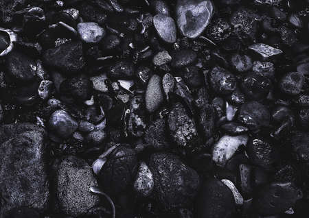 Close up of black and white cactus pebbles background.