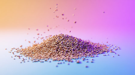 This stock photo captures a creative arrangement of seeds scattered across a vibrant gradient background, emphasizing nature, color, and texture.