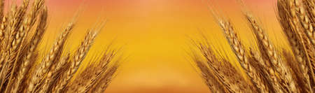 A banner featuring a bouquet of wheat spikelet creates a minimalistic composition with text space, celebrating the essence of harvest