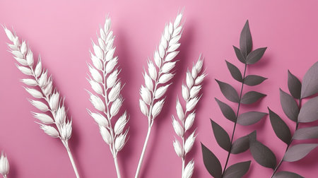 Pastel lavender background with simple white wheat stalks arranged diagonally in rows --chaos 12 --ar 16:9 --weird 150 --v 6.1 Job ID: 249e8303-553d-4221-904e-bcb58a21fdd6