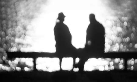 People walking down the street in the evening, beautiful light at sunset. The photo is purposely made out of focus, no faces are recognisible