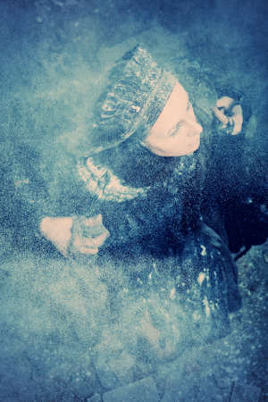 This striking image captures the essence of shifting identities using motion blur to convey the complexities of self perception and the passage of time.