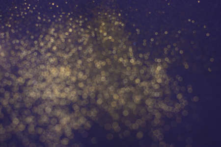 Defocused, gold glitter, on a dark blue, black backdrop. The Christmas background