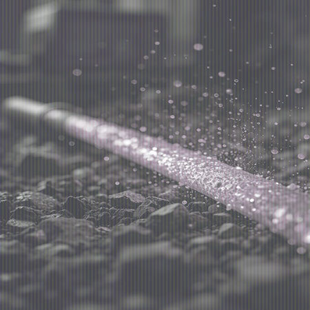 A pipe on a dark, rocky surface emits a glowing purple light with scattered particles and a soft focus effect.